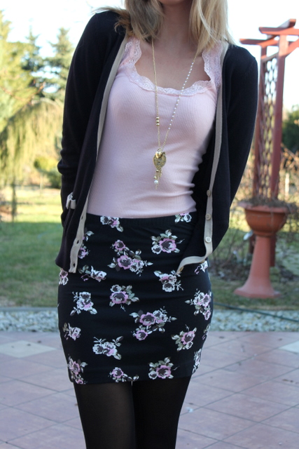 Romantycznby zestaw , idealny na poczatek wiosny. Bardzo podobaja mi sie buty i cardigan 🙂