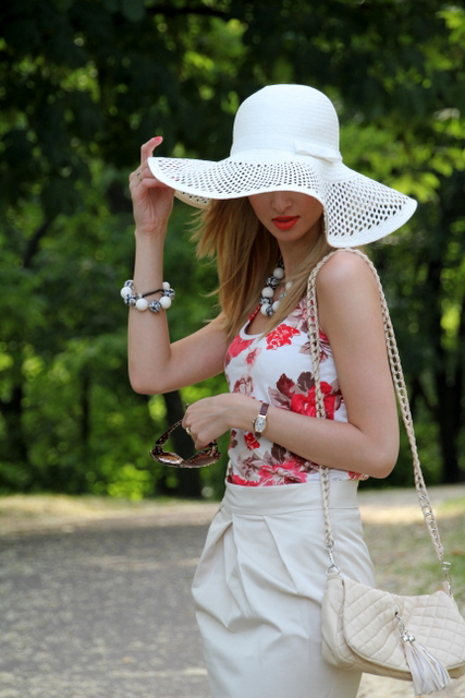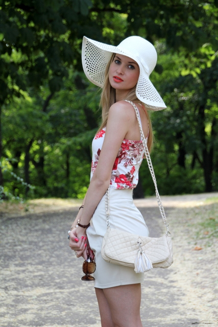Prosiłyście o set na upały więc voila ! Po raz ostatni już pokazuję Wam zestawienie w spódniczce, butach i torebce które uwielbiam ♥ Spódniczka jest świetna – jej ołówkowy kształt bardzo mi odpowiada, buty które idealnie do niej pasują no i torebka. Mam nadzieje, że wybaczycie kolejne ale już ostatnie takie zestawienie. Do całości kwiatowy top, który ożywia stylizację, kapelusz i dodatki! Alternatywą do wysokich obcasów mogą być także sandały, które również będą pasować do tego typu zestawienia ! Set ten wybrałam na uczelnie w jeden z najbardziej upalnych dni !