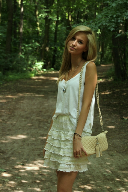 Właśnie wróciłam z kortów tenisowych i jestem wykończona – ale warto było ! Stwierdziłam, że raz w tygodniu będziemy z R. jeździć na tenisa. Dzisiaj szybki, prosty set. Nude to ostatnio jeden z moich ulubionych kolorów. Naszyjnik z Audrey Hepburn, który pełni także funkcję zegarka jest świetny ♥