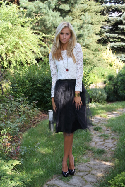 Dzisiaj pokażę Wam drugi sposób noszenia sukienki ze sklepu Loel Style. Sukienka z natury ma długie rękawy jednak ze względu iż jestem dosyć wysoka jest za krótka. W tym przypadku mogę ją nosić na dwa sposoby: albo jako sukienkę bez rękawów, gdzie wystarczyło związać je i wyglądało to bardzo naturalnie (klik) albo tak jak dziś. Zestawiłam ją z tiulową spódnicą ze sklepu novamoda.pl , która zachwyciła mnie swoją lekkością. Do całości dodatki i mamy zestaw lekko vintage. Mam nadzieję, że się Wam spodoba ! Enjoy !