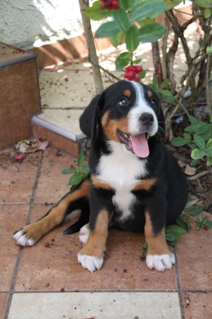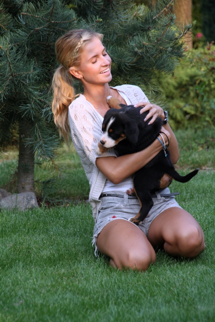 Przedstawiam Wam nowego członka rodziny. Wabi się Boja i ma 2 miesiące. Rasa: Duży Szwajcarski Pies Pasterski. Przyjechała do nas dziś z samego rana i jest niesamowicie słodka, chociaż i tak nie mogę się doczekać aż urośnie i będzie taaaaaaaka duża 😉
