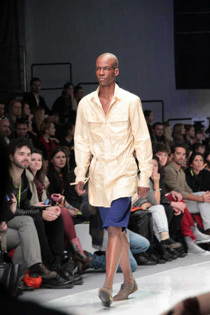 Tak też się stało ! Materiały nylonowe, lekkie i zwiewne kurtki oraz płaszcze, spójne połączenia i świeżość – to tylko kilka rzeczy którymi mogliśmy się zachwycać. Kolory które przeważały to głównie: biel, pomarańcz, niebieski i zieleń. Idealnie dobrana muzyka to kolejny atut. Uważam, że był to najlepszy piątkowy pokaz. Udało mi się usiąść w drugim rzędzie co dodatkowo spotęgowało moje wrażenia. Zapraszam Was do obejrzenia zdjęć 🙂