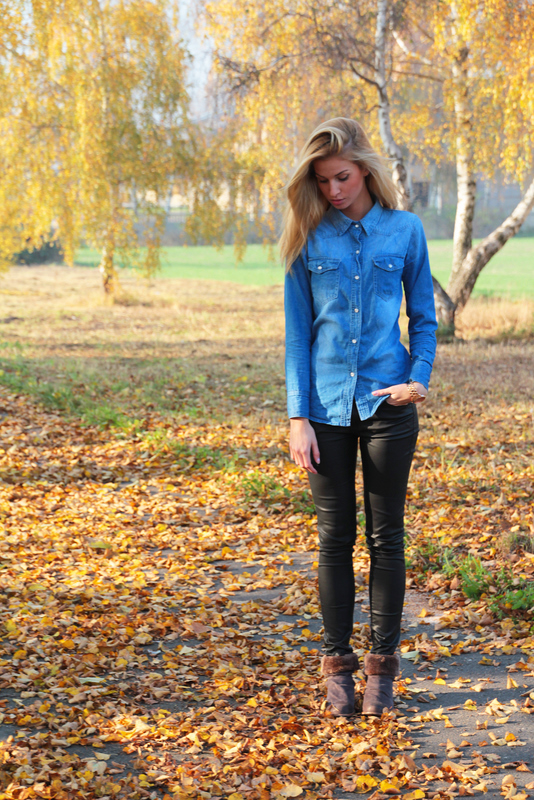 bardzo ładnie, ale nie lubie jak wchodze na 1 blog i widze stylizacje jeansowa koszula + „skurzaki, wchodze na kolejny i widze to samo…