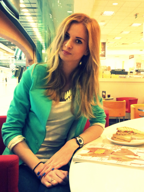 ale jesteś śliczna! super marynarka i naszyjnik 🙂