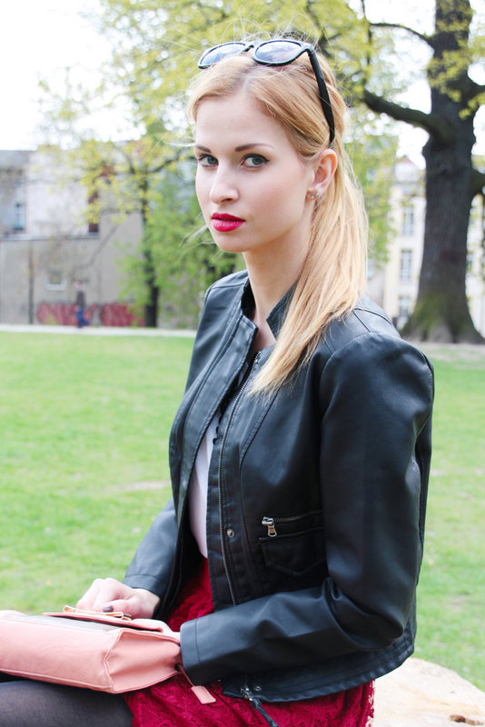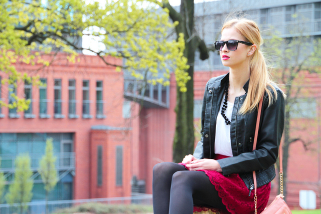 Ładnie Ci w czerwonych ustach 🙂 okulary też mi się podobaja, ale ramoneska nie specjalnie..;D