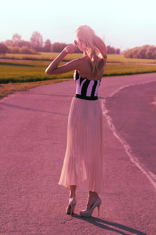 W tym sezonie spódnice zawładnęły moim sercem. Dzisiaj prezentuję Wam już kolejną – plisowaną, beżową midi. Spodziewam się, że nie każdemu spodoba się to połączenie, jednak mam nadzieję, że chociaż w minimalnym stopniu zainspiruję Was do noszenia takich spódnic 🙂 Na co dzień szpilki zastąpiłam czarnymi balerinkami, jednak dzisiaj zestaw w wersji eleganckiej.