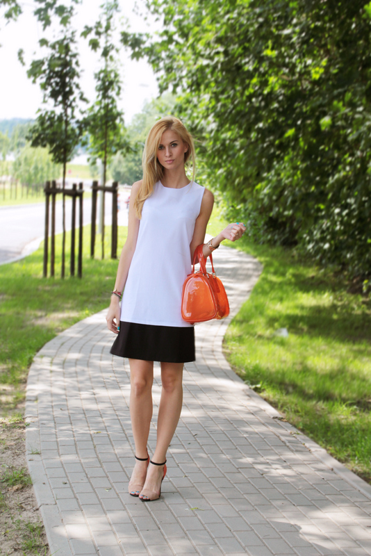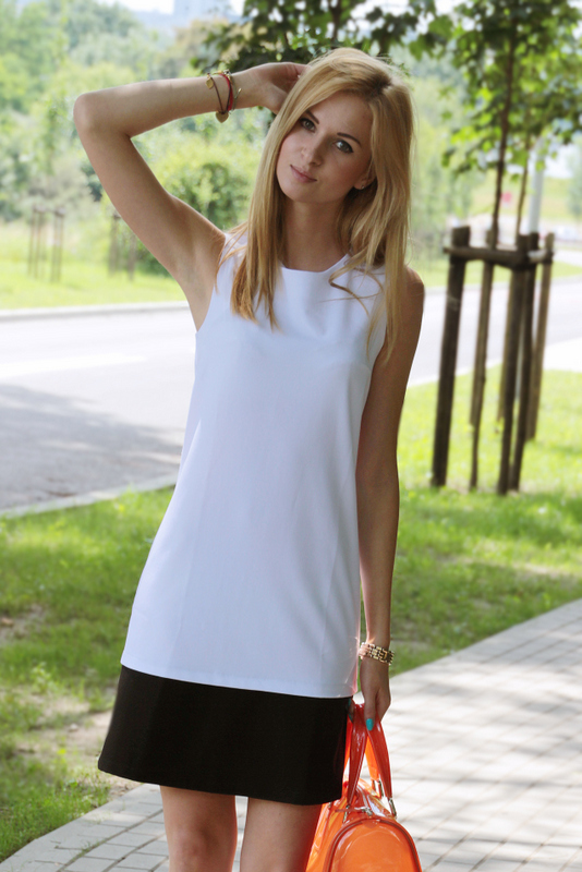 Ostatnio w moje ręce wpadła idealna klasyczna sukienka, o jakiej zawsze marzyłam. Przez wiele miesięcy poszukiwałam właśnie takiego fasonu. Biel i czerń dodatkowo potęgują moją radość, gdyż uwielbiam klasykę i minimalizm. Sukienkę znalazłam w klubie zakupowym MiMomento a pochodzi ona z kolekcji Pure by AgaPaul (Agnieszki Paul-Smolińskiej) – jestem zachwycona całą kolekcją ! Zdaję sobie sprawę, że fason sukienki ma zarówno swoich przeciwników jak i zwolenników (ja zdecydowanie należę do tej drugiej grupy). Wracając do zestawu…pomarańczowe dodatki ożywiły całość i sprawiły że nabrał on również codziennego wymiaru. Mam nadzieję, że Wam się spodoba ! Enjoy !