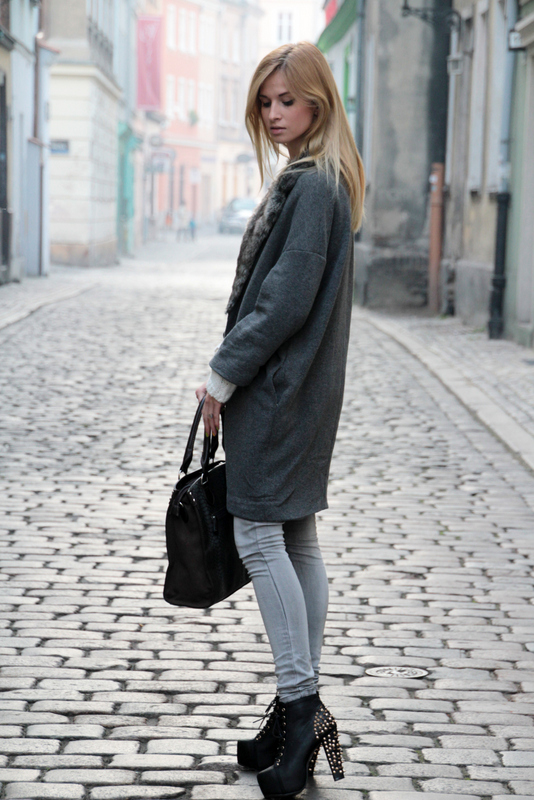 Płaszcz oversize był moim must have jeśli chodzi o ten sezon. Niestety nie zdążyłam pokazać Wam jak fajnie wygląda przewiązany paskiem ale… co się odwlecze to nie uciecze (jeszcze nie raz pojawi się na blogu). Dzisiaj zestaw w odcieniach szarości – bardzo lubię ten kolor nawet jeśli w oczach niektórych jest nudny.