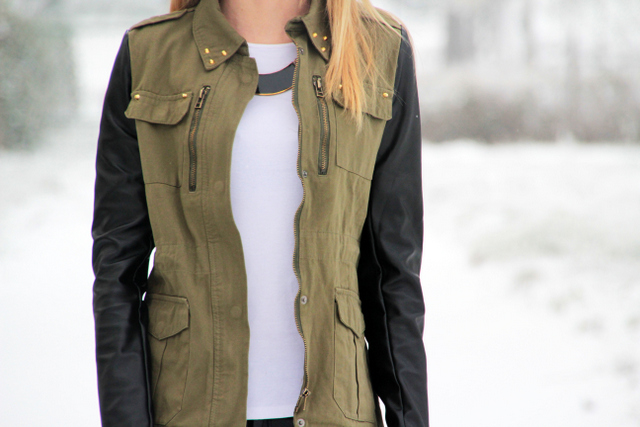 Spadł śnieg i jest już naprawdę zimno. Niech Was nie zwiedzie mój brak okrycia wierzchniego, ponieważ płaszcz został ściągnięty tylko na chwilę, do zdjęć, aby wszystkiego nie zasłonić. Hitem w dzisiejszym zestawie jest marynarko, koszulo, kurtka (jeśli kurtka to tylko na późną wiosnę i lato), która ZNOWU ma skórzane rękawy. Tak – mania dopadła mnie na dobre o czym wspomniałam już w poprzednim poście. Możecie też zobaczyć zegarek w świetle dziennym 🙂 Mam nadzieję, że Wam się spodoba ! A tymczasem życzę Wam miłej niedzieli i może leniwej ?? Moja na pewno taka jest ♥
