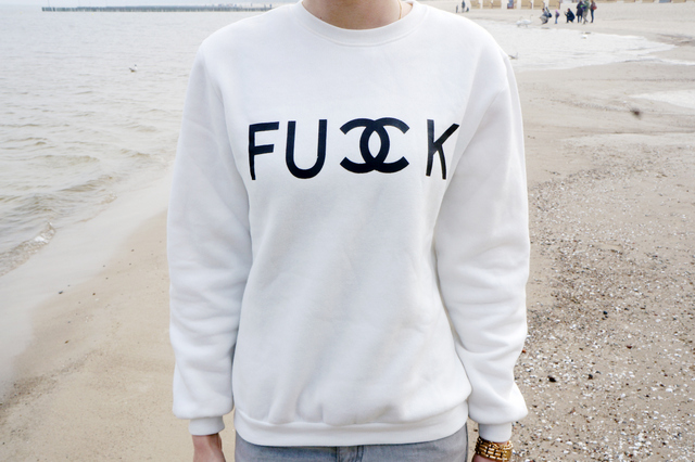 Absolutnie nie chce abyś odebrała to jako złośliwość. Uwielbiam Twoje stylizacje i cudowną, delikatną urodę. Ale ten wulgaryzm z tandetnym logo chanel w ogóle nie pasuje do Ciebie. A może to ma jakieś inne znaczenie? Proszę oświećcie mnie!!